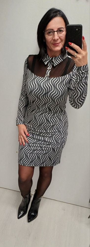 Blue Nature Rozy ruha mintás, fehér-fekete, necc kombinációval