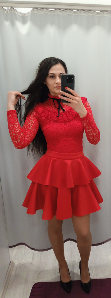 Három fodros, neoprén szoknya.Anyagösszetétel: 85% poliészter, 10% viszkóz, 5% elasztán