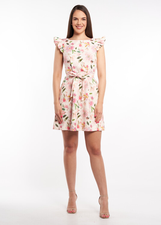 Envy Ujjatlan fodros vállú tarka virág mintás ruha övvel