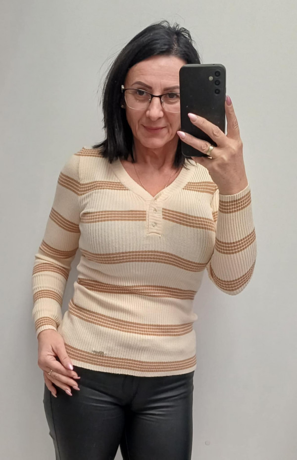 Mayo Chix felső V nyakú patentes csíkos
