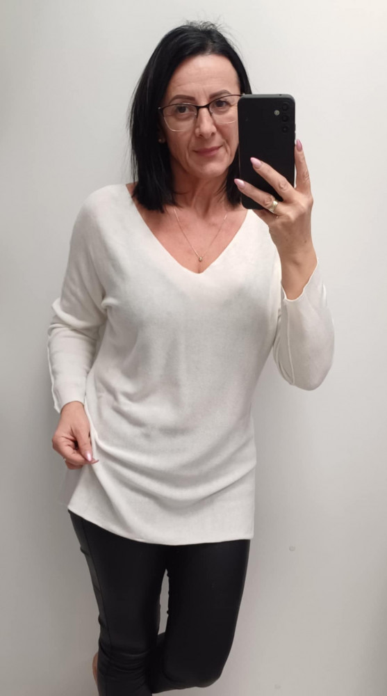 Mayo Chix felső V nyakú vékony kötött ekrü