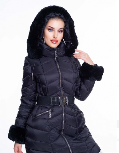 Mayo Chix Mila kabát fekete pufi nyuszisör fv.