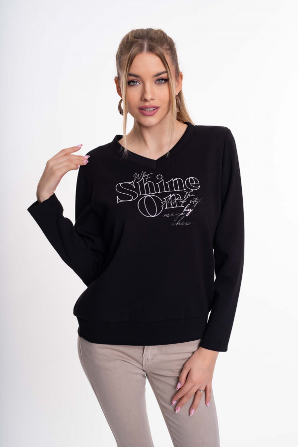 Elasztikus anyagból készült, lezser szabásvonalú felső, matricanyomott díszítéssel.