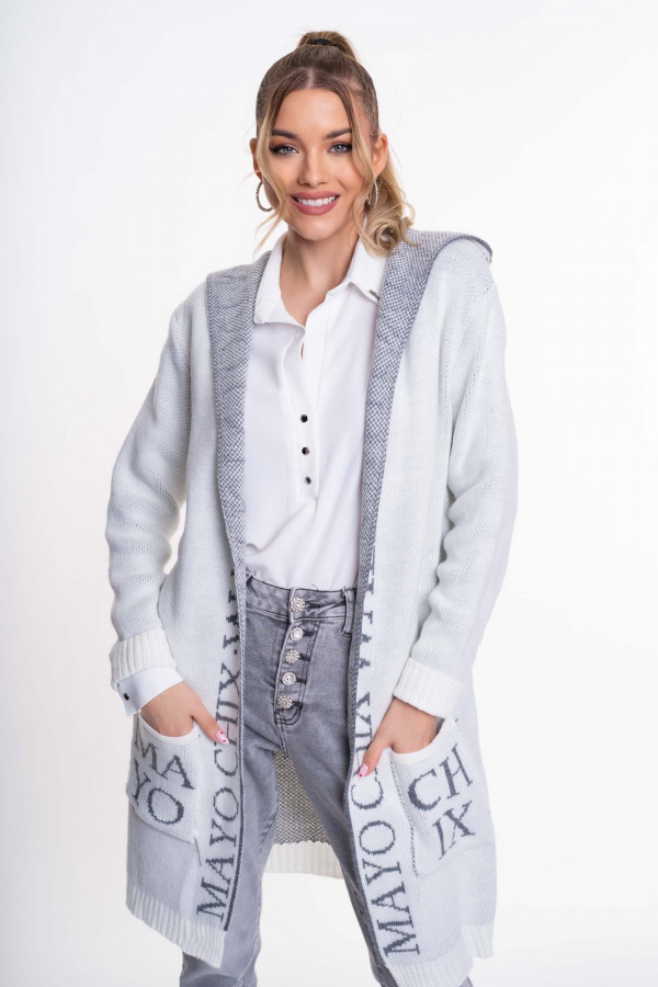 Mayo Chix Wolf kardigán kötött/intarzia/zsebes fehér