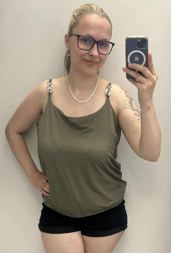 Rensix atléta kereknyakú spagetti/lánc pántos khaki 2025