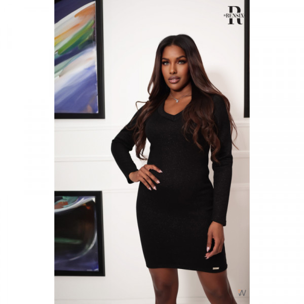Rensix Fekete Csillogós V-nyakú ruha