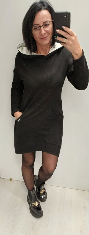 Rensix fekete ruha A vonalú zsebes kapucnis
