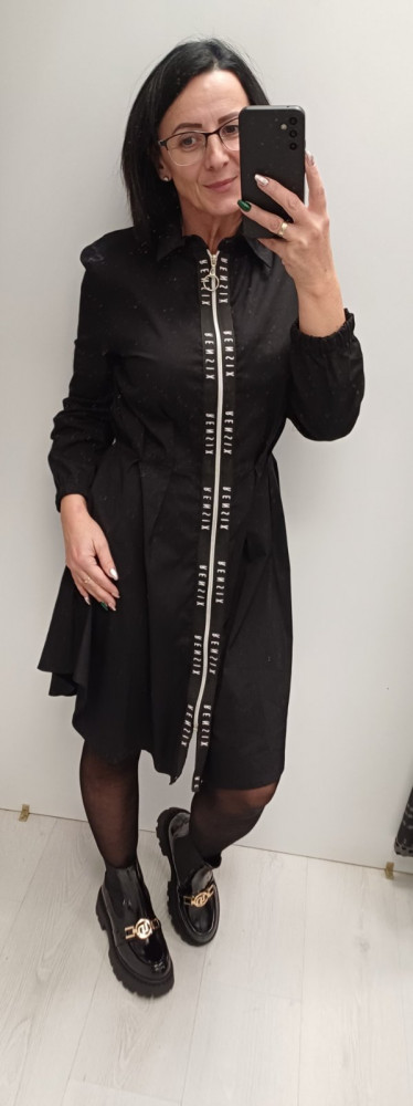 Rensix fekete ruha gumis ujjú cipzáros feliratos galléros