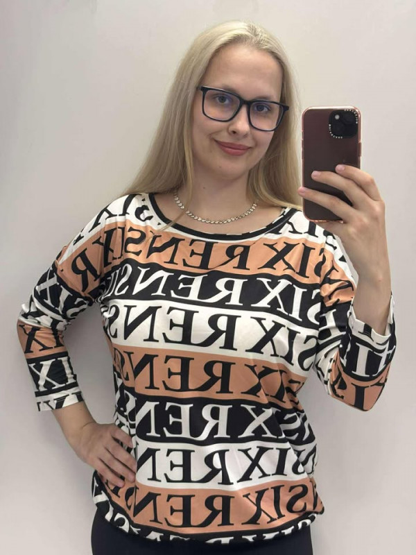 Rensix felső kereknyakú hosszúujjú fekete/fehér/karamell vastag csíkos 2025