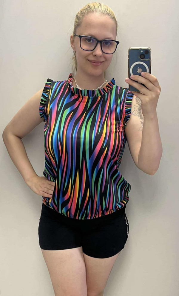 Rensix felső kereknyakú fodros nyaka ujja szivárvány csíkos 2025
