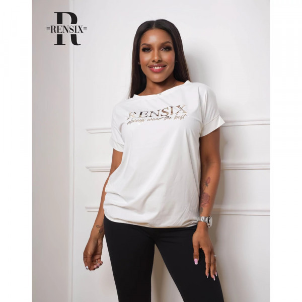 Rensix felső kereknyakú húzott aljú arany fny Always wear the best fehér 2025