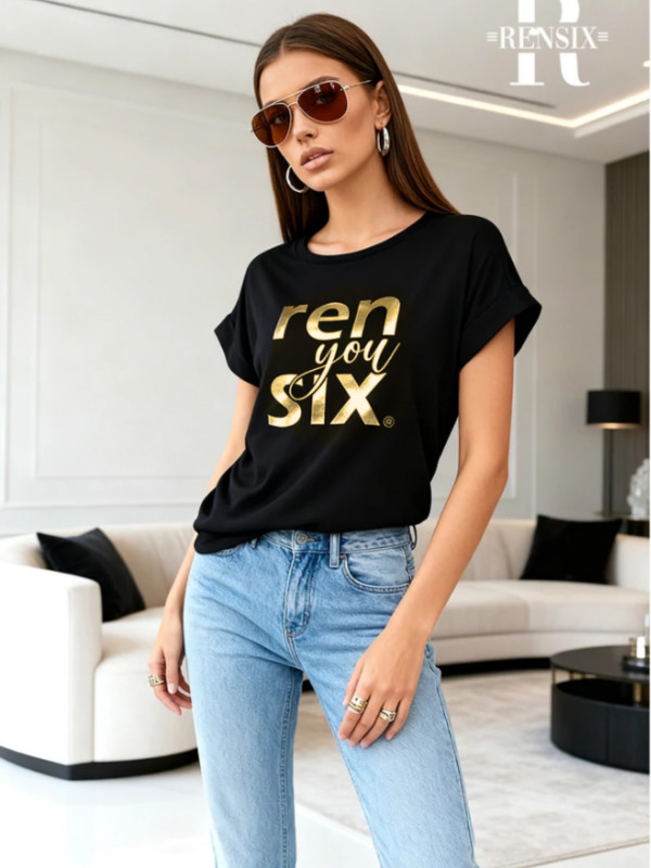 Rensix felső kereknyakú rövidujjú arany Rensix you felirat fekete 2026