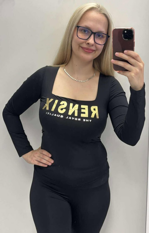 Rensix felső szögletes nyakú hosszúujjú arany/ezüst felirat fekete 2025