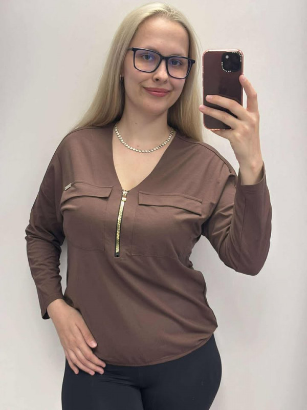 Rensix felső V nyakú hosszúujjú zippes mellzsebes barna 2025
