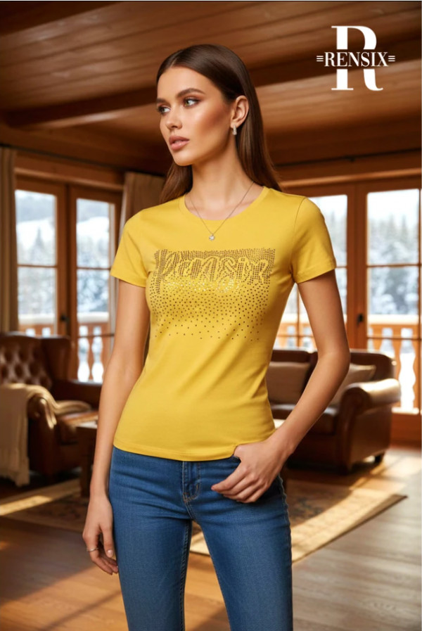 Rensix ferlső kereknyakú rövidujjú aprócsilis feliratos citromsárga 2026