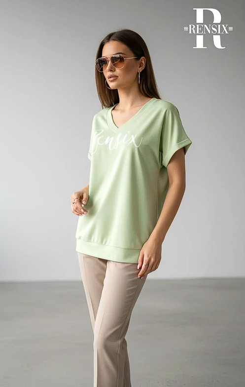 Rensix póló V nyakú rövidujjú vízszintes Rensix feliratos zöld 2026