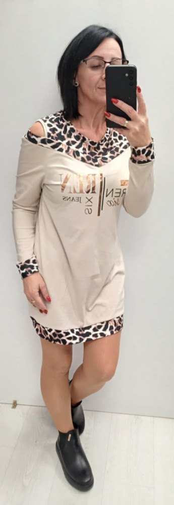 Rensix ruha bézs vállán kivágott ocelot mintás rosegold fny.