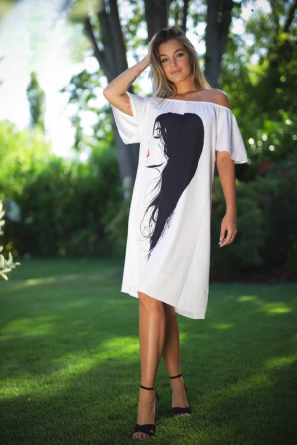 Rensix ruha csónaknyakú vállra lehúzós fodros arc oldalról 2025