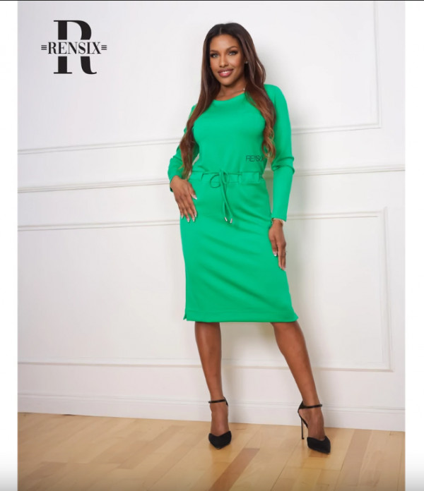 Rensix ruha derékban kötős feliratos sötétzöld 2025