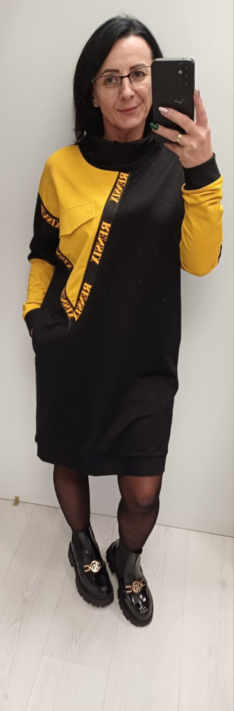 Rensix ruha garbós díszzsebes feliratos fekete-sárga