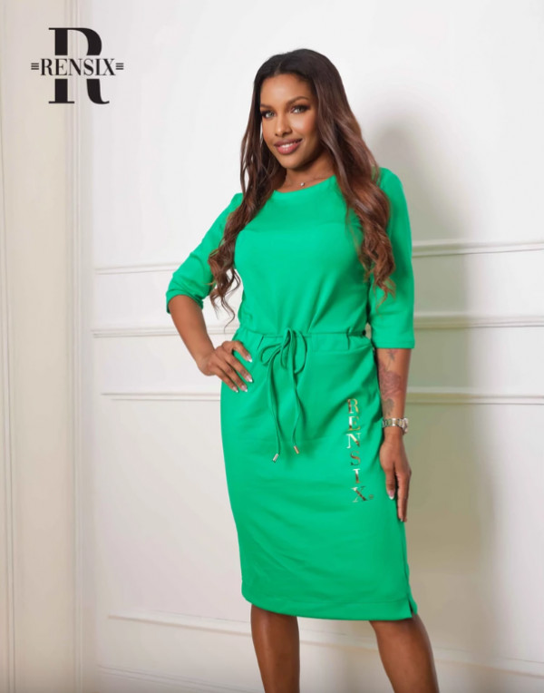 Rensix ruha kerek nyakú derékban kötős feliratos zöld 2025