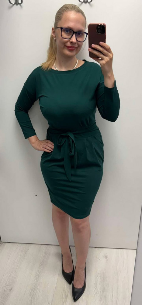 Rensix ruha kereknyakú hosszúujjú derékban kötős sötét zöld 2025