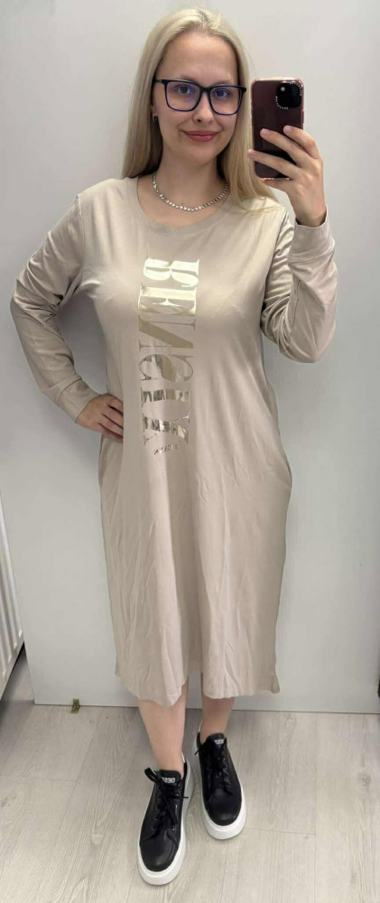 Rensix ruha kereknyakú hosszúujjú hosszanti ezüst RENSIX felirat sötétbézs 2025