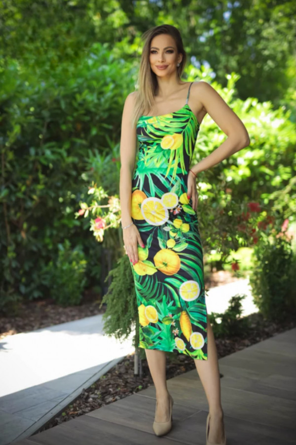 Rensix ruha spagetti pántos oldalt vágott fekete alapon citrom 2025