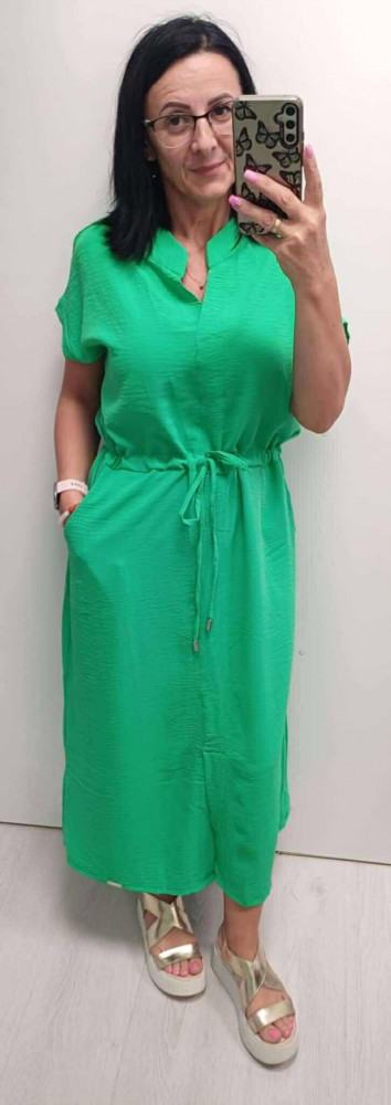 Rensix ruha V nyakú krepp derékban kötős zöld 2025