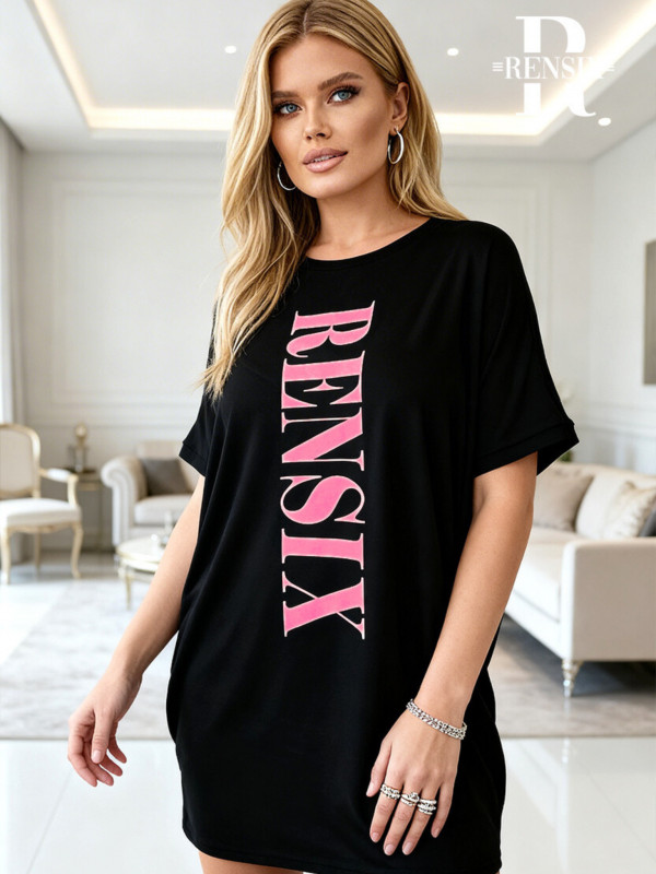 Rensix tunika kereknyakú rövidujjú bőfazonú pink feliratos fekete 2026